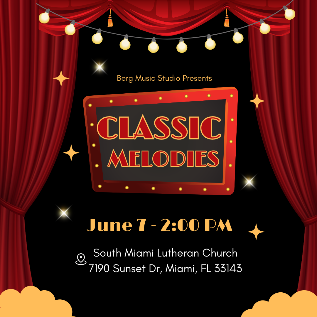 Spend a wonderful afternoon enjoying music inspired by classic films, performed by our Berg Music Studio students. After the recital, guests are invited to enjoy a relaxed, family-friendly gathering with popcorn, hot dogs, and special treats.